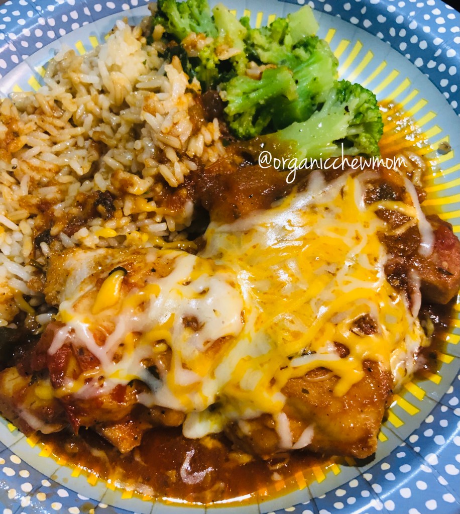 Don’t be afraid to improvise on seasonings, sides and cheese. The latter is always a must for me to mitigate exposure to the smallest Organic Chew Kid due to dairy allergies. He has yet to find vegan substitutes palatable, so I always remove a portion of the dish for him prior to addition for big brother and hubby.